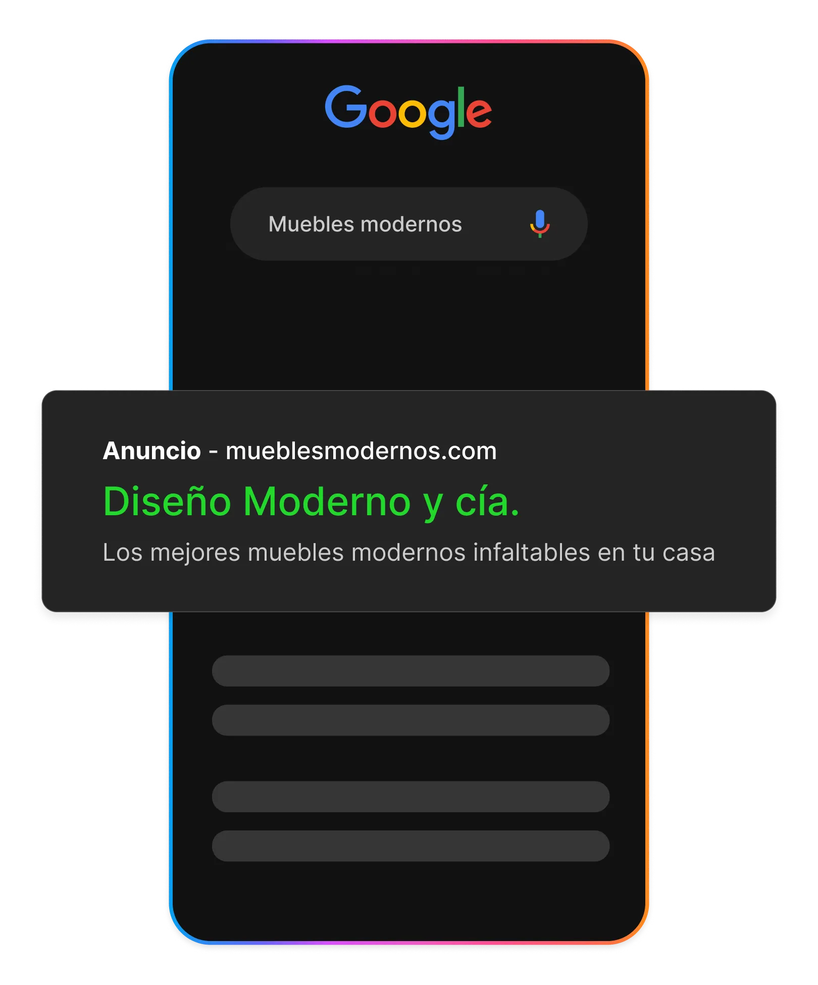 Consigue más ventas, clientes potenciales o tráfico en tu sitio mostrando tu empresa a personas que buscan activamente en Google.